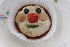 目は、黒豆、ほっぺは、ウインナー、鼻はミニトマト、口は、ピーマンでした。給食センターのみなさんが、一つ一つ丁寧に作ってくださいました。手作りなので、一つ一つ表情がちがっていました。元気の出た給食でした。