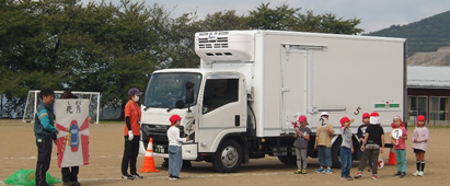 10月1日(水)は、交通安全教室でした。交通安全センターの方とセブンイレブンのドライバーの方が来て、「死角」「内輪差」そしてブレーキをかけて車が止まるまでの距離を実際に児童の目の前で見せてもらいました。