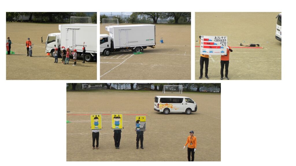 10月1日に秋の交通安全教室がありました。交通安全教育支援センターの指導員さんと配送業者さんが講師となって、「死角」「内輪差」「衝突」について、実際にトラックや車を使って教えていただきました。「死角」実験では、実際に見えない位置に立ってみました。「内輪差」「衝突」実験ではトラックや車を動かして風船が割れたり、ダミー人形が轢かれたりする様子を目の当たりにしました。交通事故の怖さを改めて実感するとともに、一つしかない命をちゃんと守らなきゃという気持ちがわいてきました。いつもお話いただいている「止まる」「見る」「待つ」の大切さが腑に落ちる交通安全教室でした。